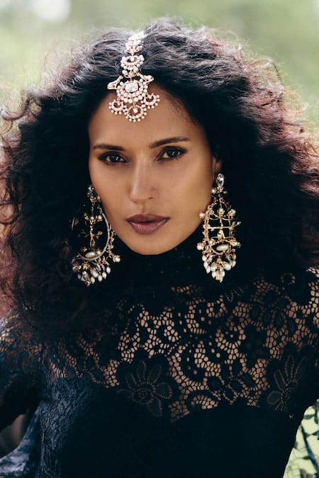Rose Gold Pearls, Stones Feral Embellished Chandbalis