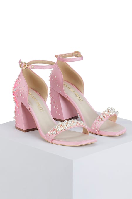 Pink Pearls, Beads Dandelion Twinkle Embellished Block Heels