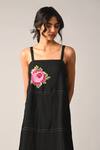 Black Linen Embroidery Square Neck Hulthemia Strap Maxi Dress