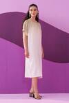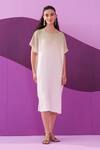 Beige Crepe, Satin Round Neck And White Midi Dress