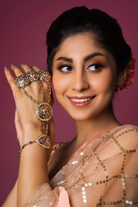 Multi Color Pearls, Stones Navratna Embellished Haathphools - Set Of 2
