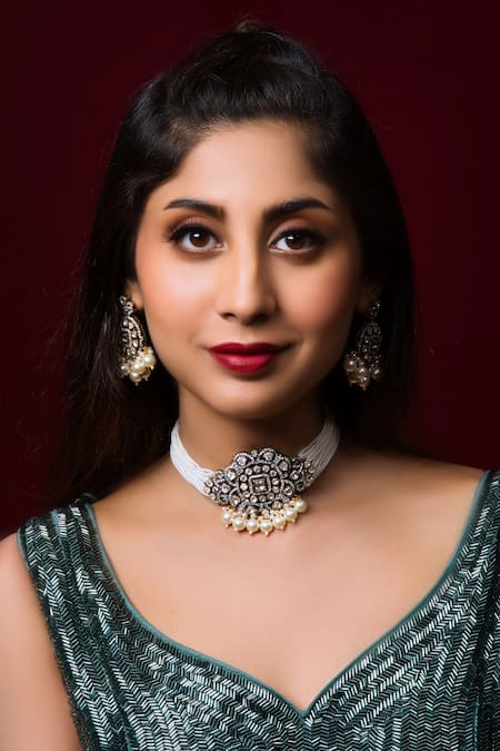 White Pearls, Stones Victorian Embellished Choker Necklace Set