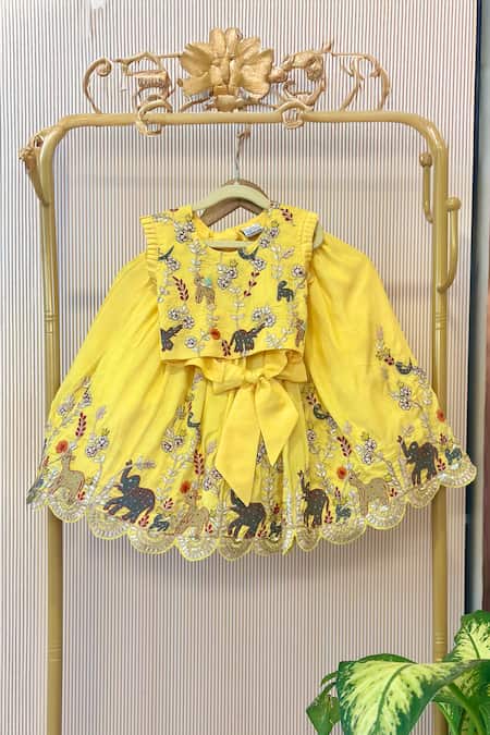 Yellow Bemberg, Silk Embroidery, Lace Blouse And Lehenga Set
