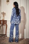 Blue Satin Sequins Plunge Neck Designer Embellished Pant Set