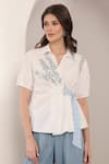 White Embroidery Collared Frost Fold Cotton Poplin Top