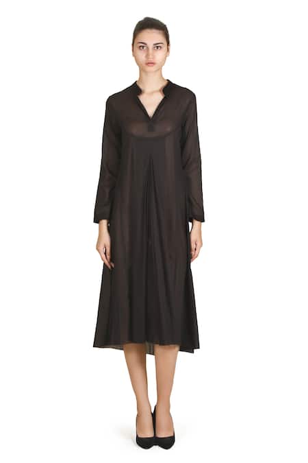 Black Cotton, Viscose Split V-neck Everyday Ink Dress