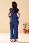 Blue Denim Embroidery Collared Shirt And Pant Set