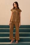 Brown Poplin Embroidery Mandarin Collar Flora Pant Set