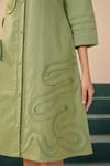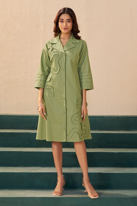 Green Poplin Collared Designer Midi Dress
