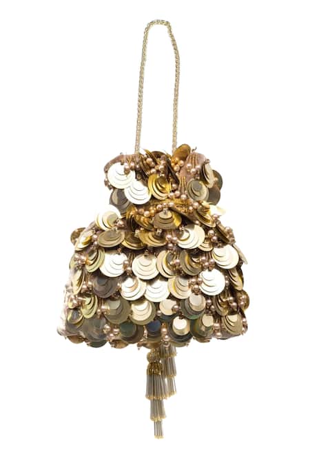 Gold Sequins, Beads, Tassels Work Potli Bag