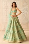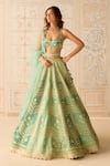 Teal Silk, Organza Tassels, Embroidery, Zari Round Neck Mist Green Lehenga Set