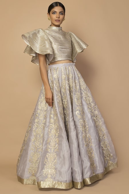 Grey Organza Round Embroidered Lehenga Set