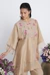 Beige Chanderi, Organza Embroidery, Sequins Split Dhaagon Ka Jaal Kurta Set
