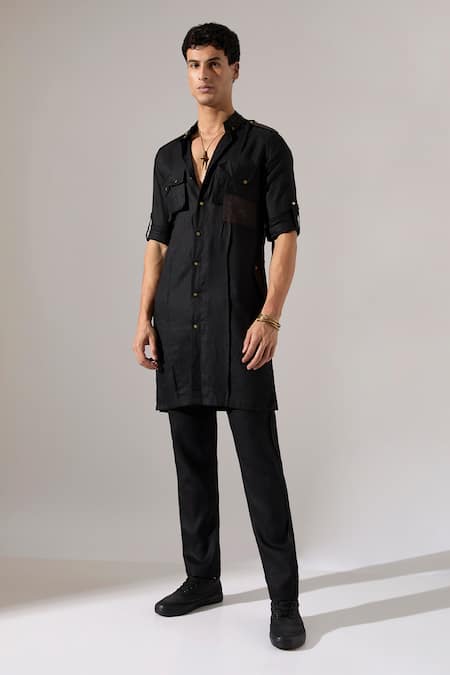 Black Linen Aaron Kurta Set