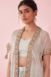 Pink Crepe, Organza Embroidery Round Neck Pale Blue Cape Set