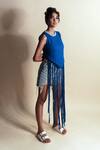 Blue Cotton Tassels Crew Neck Cafe Crop Tee