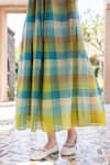 Multi Color Handloom Cotton Embroidery Round Neck Entwined Checkered Midi Dress