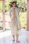 Beige Handloom Cotton Embroidery Round Neck Light Kurta Set