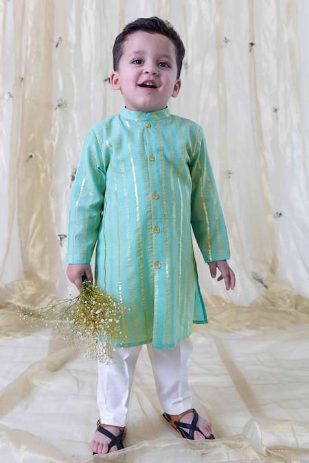 Green Cotton Stripe Pattern Kurta Set