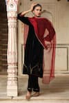 Black Velvet, Chiffon Embroidery Round Neck Kurta Set