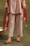 Shop_Trendy Tokari_Pink Silk, Chanderi Embroidery, Lace V-neck Kiran A-line Short Kurta Set _Online_at_Aza_Fashions