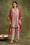 Buy_Trendy Tokari_Pink Silk, Chanderi Embroidery, Lace V-neck Kiran A-line Short Kurta Set _Online_at_Aza_Fashions