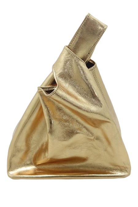 Gold Plain Rae Metallic Wristlet Leather Bag