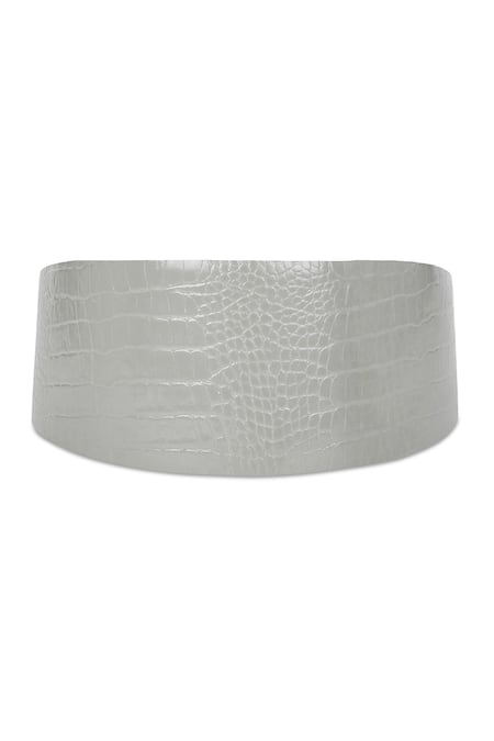 Grey Textured Vera Leather Croc Belt