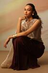 Beige Satin, Georgette, Organza Embroidery Round Neck Brown Skirt Set