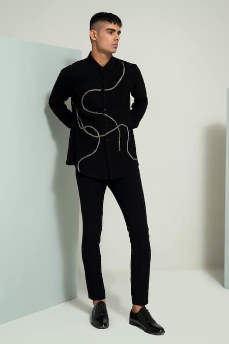 Black Cotton Beads Metallic Chain Embellished Shirt