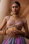 Multi Color Organza, Georgette Sequins, Gota Multicolor Embroidered Lehenga Set