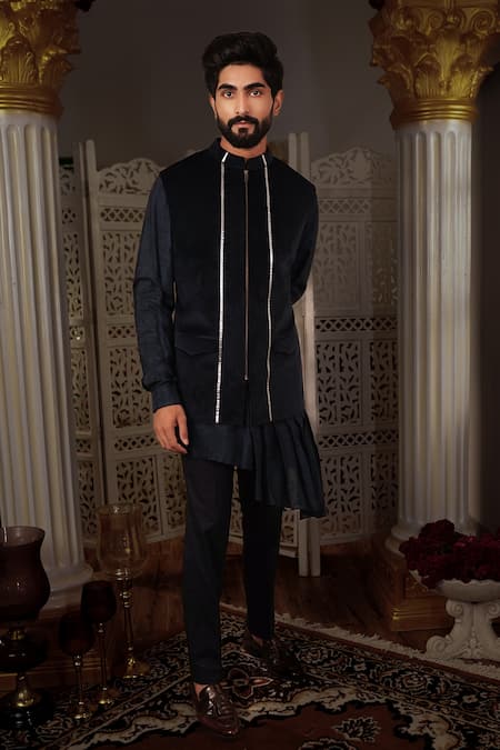 Buy_Yajy By Aditya Jain_Blue Kurta And Bundi Silk, Pants Stretch Cotton Keyi & Set _Online_at_Aza_Fashions