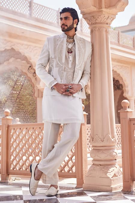 Gold Tissue, Silk Embroidery Snowfall Serenity Indo-western Set