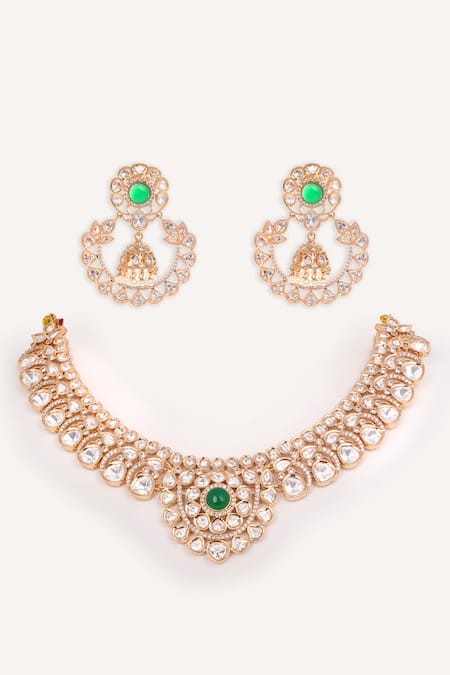 Gold Plated Stones, Pearls, Beads Kundan Choker Necklace Set